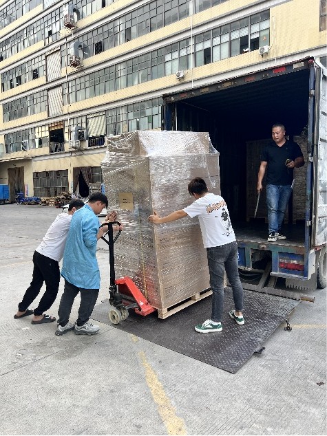 ကျွန်ုပ်တို့၏ 0 န်ထမ်းများသည်ကုန်ပစ္စည်းများကိုထုပ်ပိုးပြီးထရပ်ကားထဲသို့ပြောင်းရွှေ့နေကြသည်။