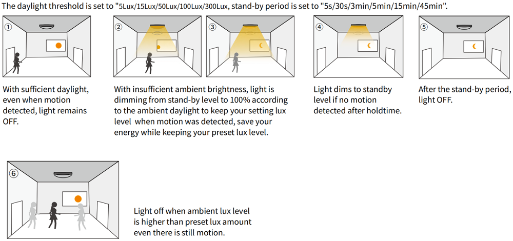 1 ။ ရွေ့လျားမှုရှာဖွေတွေ့ရှိမှု + Daylight Havear + Lux / Lu Lux / Lux