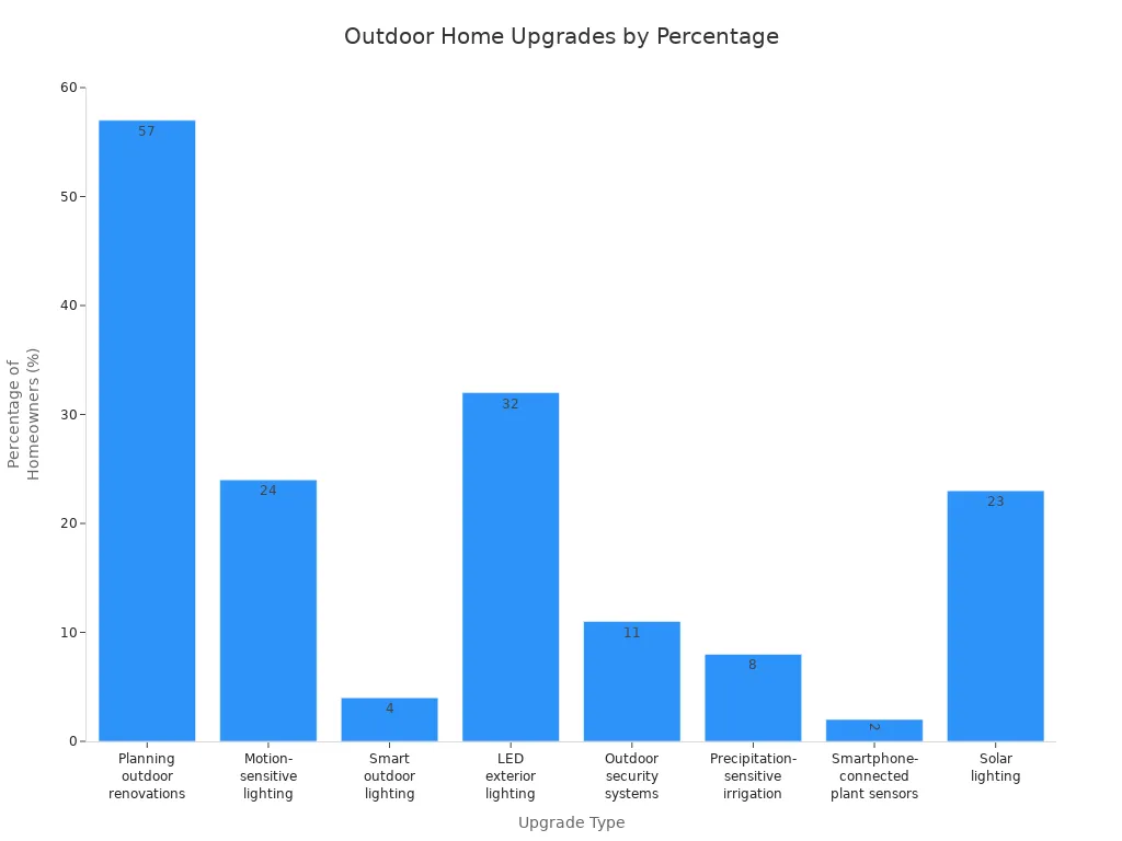 ထိပ်ဖျား: လူအများစုကစမတ်အလင်းရောင်လိုချင်ကြသော်လည်းလူအများမယူသေးပါ။ အောက်ဖော်ပြပါဇယားသည်ပြင်ပအလင်းရောင်အဆင့်မြှင့်တင်မှုများအတွက် Smart Controls သို့မဟုတ်အလိုအလျောက်အသုံးပြုမှုကိုမည်မျှအသုံးပြုသည်ကိုပြသသည်။